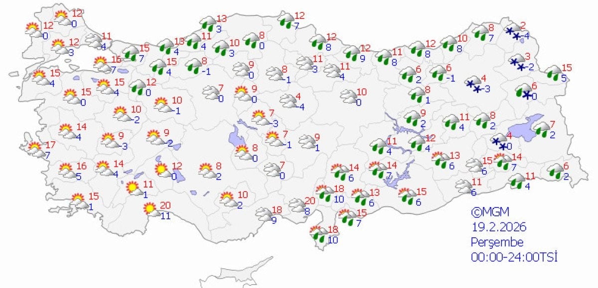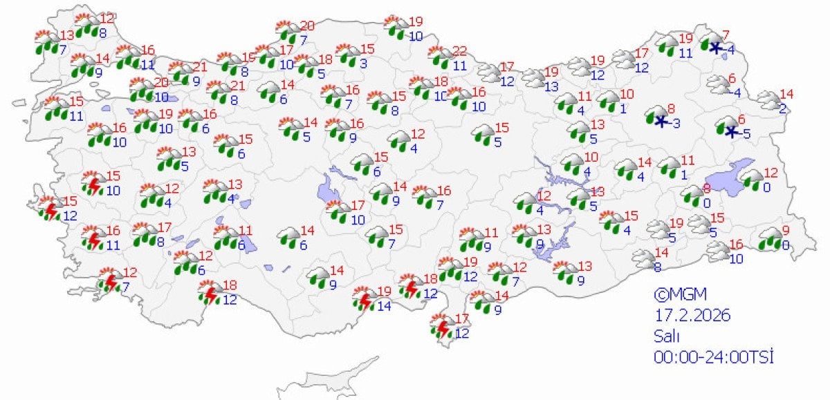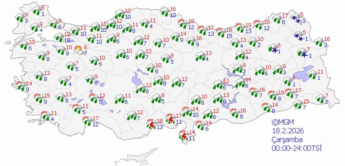 Adana, Afyonkarahisar, Antalya, Artvin, Aydın, Balıkesir, Bilecik, Bolu, Burdur, Bursa, Çanakkale, Denizli, Eskişehir, Giresun, Isparta, Mersin, İzmir, Kayseri, Kırşehir, Konya, Kütahya, Manisa, Kahramanmaraş, Muğla, Nevşehir, Niğde, Ordu, Rize, Samsun, Sivas, Tokat, Trabzon, Uşak, Yozgat, Aksaray, Karaman, Karabük, Osmaniye ve Düzce için sarı kodlu meteorolojik uyarı geldi.