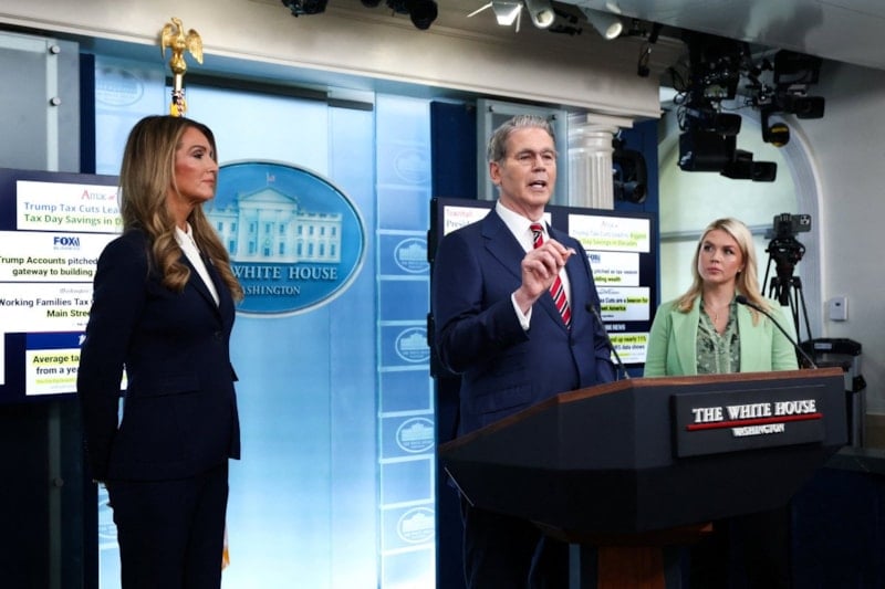 ABD Hazine Bakanı Scott Bessent, Beyaz Saray Basın Sözcüsü Karoline Leavitt ve ABD Küçük İşletmeler İdaresi Başkanı Kelly Loeffler, Beyaz Saray’da ABD Vergi Günü vesilesiyle düzenlenen basın toplantısında medya mensuplarının sorularını yanıtladı.