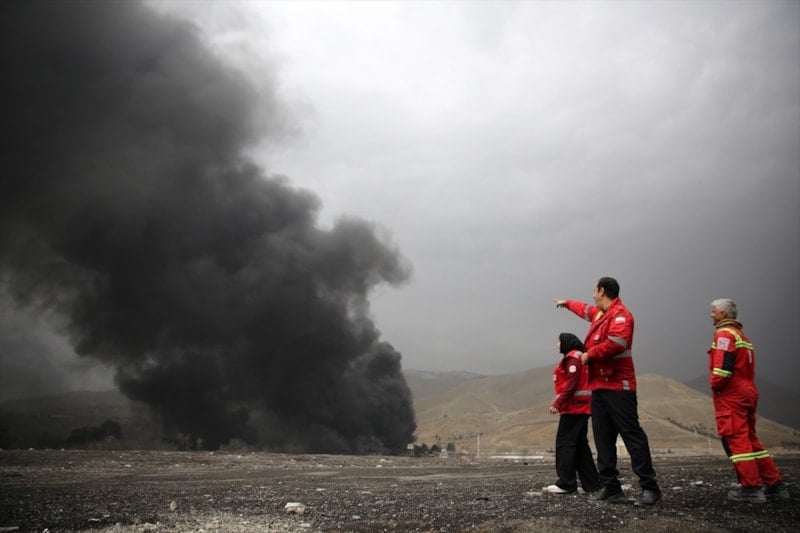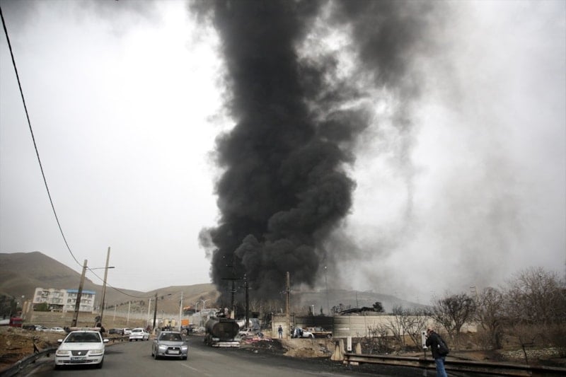 Tahran’ın kuzeybatısında bulunan ve yangının sürdüğü petrol tesisinin dumanları tüm şehrin üzerine yayılmaya devam ediyor.