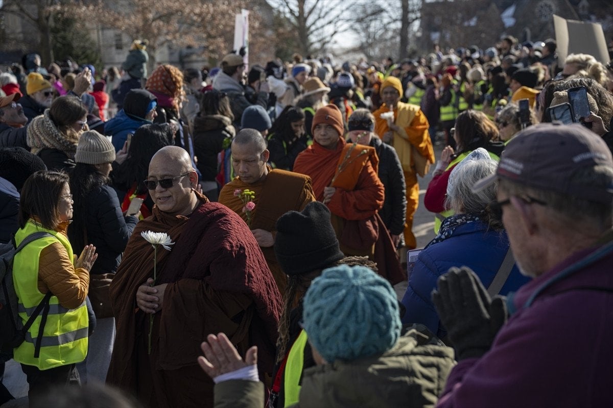 Washington’da büyük ilgiyle karşılanan Budist keşişler, yürüyüşleri sırasında vatandaşlarla sohbet ederek barış mesajlarını paylaştı. Etkinlik, başkentte toplanan kalabalık tarafından alkışlarla karşılandı.