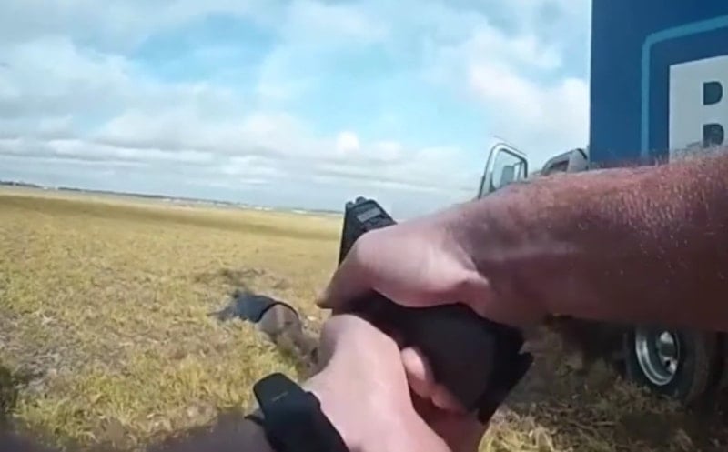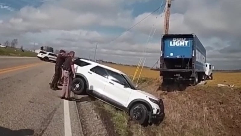 Ekipler, aracı durdurmak için lastik patlatıcı şeritler kullandı. Ancak kovalamaca sırasında şüphelinin, bir şerif yardımcısına ait devriye aracına çarptığı ve kontrolünü kaybederek tarlaya savrulduğu bildirildi.