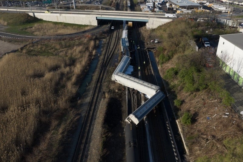ABD’nin New Jersey eyaletindeki North Bergen’de meydana gelen tren kazasında yük treninin 13 vagonu raydan çıktı.