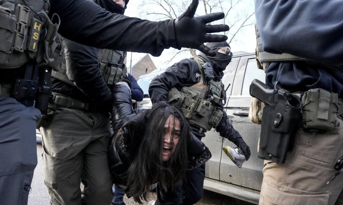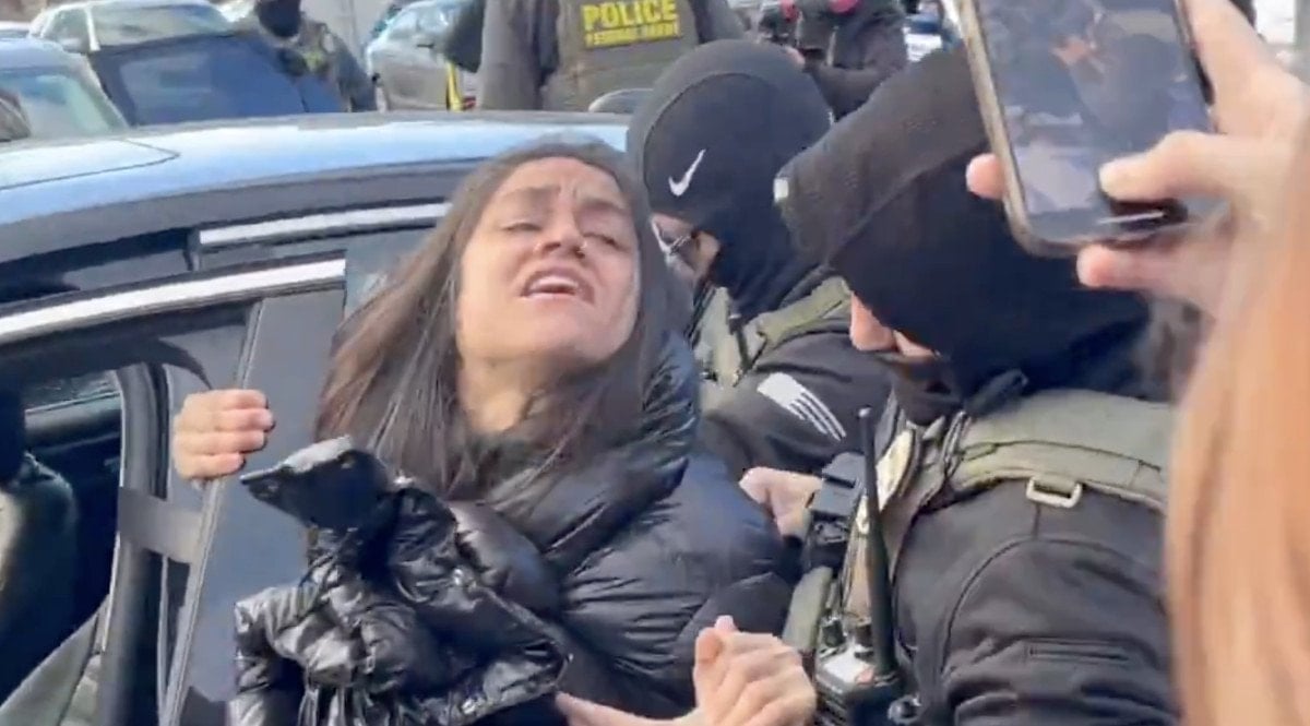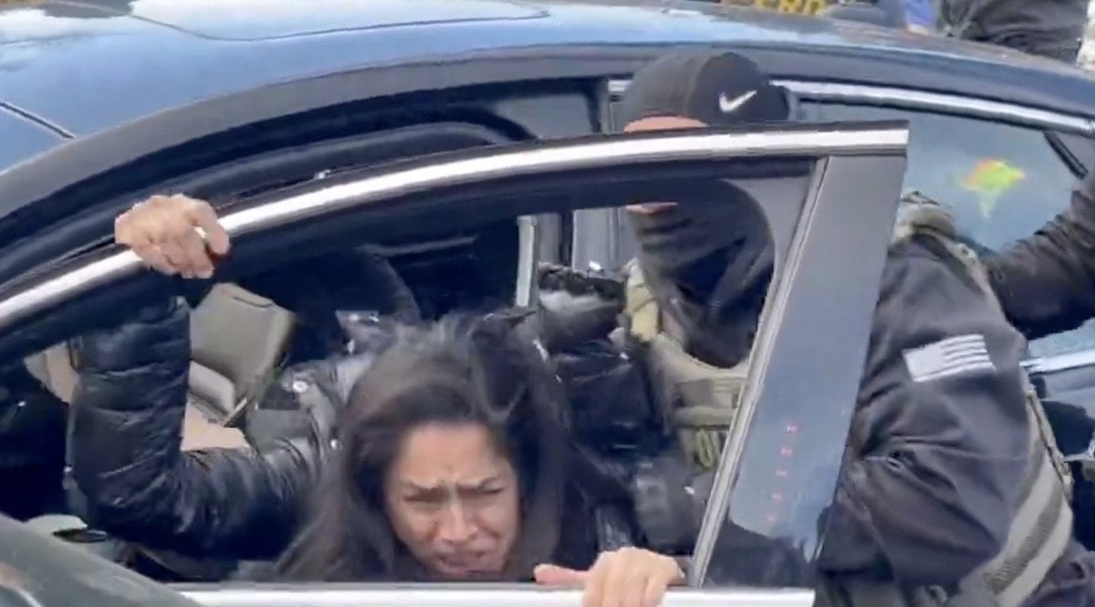 Görüntülerde ayrıca polislerin, kadına ters kelepçe takarak ICE aracına doğru götürdüğü görüldü.