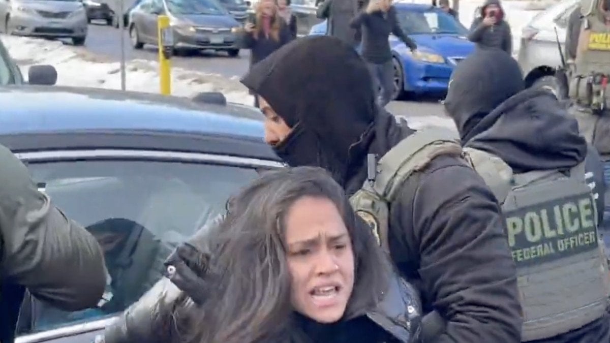 Görüntülerde, araç korna seslerinin yanı sıra kadının, maskeli ICE polislerince aracını hareket ettirmesi için yüksek sesle uyarıldığı duyuldu.