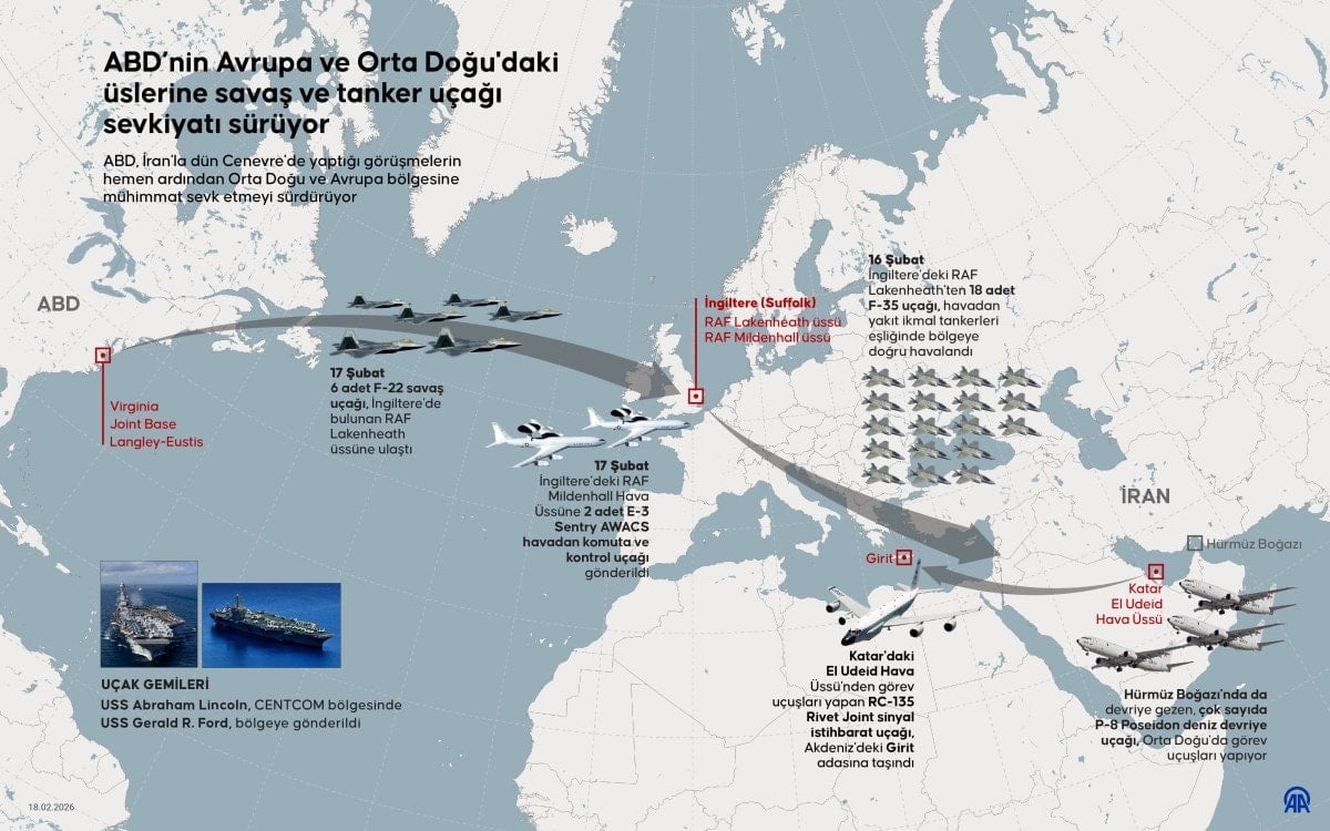Bu kapsamda ABD’nin Avrupa ve Orta Doğu’daki üslerine yoğun askeri sevkiyatı son 48 saatte dikkat çekici seviyeye ulaştı.