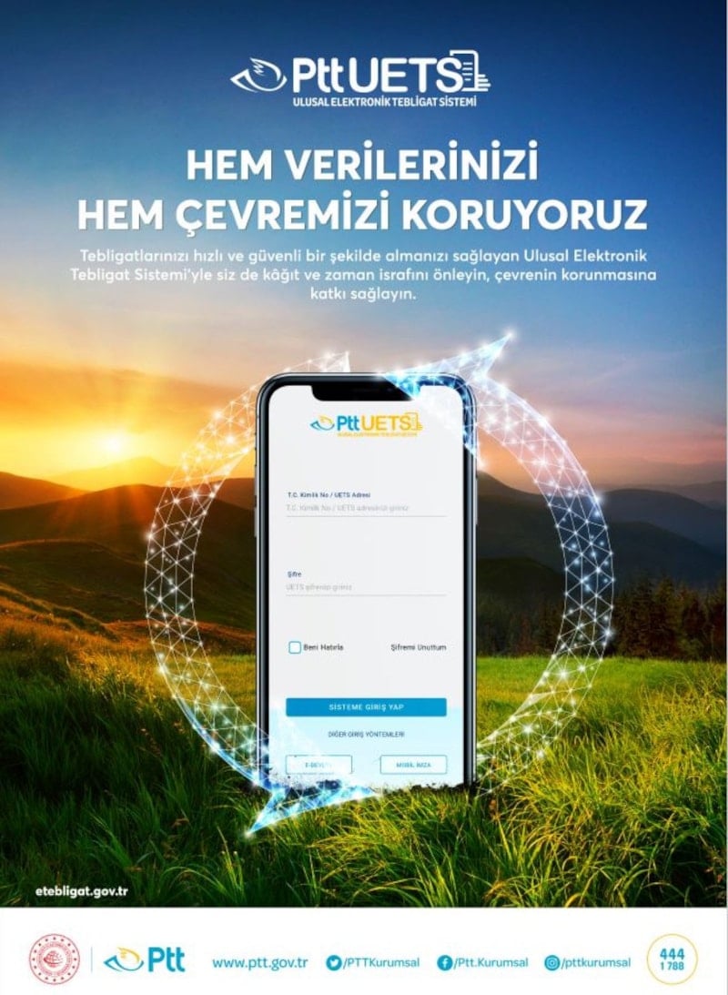 “Uygulama ile vatandaşlarımız mobil telefonları üzerinden anında yeni tebligat ile ilgili bildirim alabiliyor. Mobil uygulama üzerinden alınan tebligatlar ayrıca dijital olarak da arşivlenebiliyor. Vatandaşlarımız ‘https://www.ptt.gov.tr/dijital-posta-e-tebligat‘ sayfasından UETS hesabını açabiliyor ve kullanım kılavuzlarına ulaşabiliyor.”