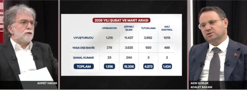 CNN Türk ekranlarında Ahmet Hakan’ın konuğu olan Bakan Gürlek, ekrana gelen tabloyu göstererek şunları söyledi: