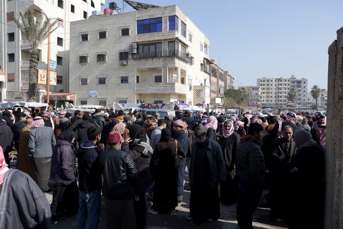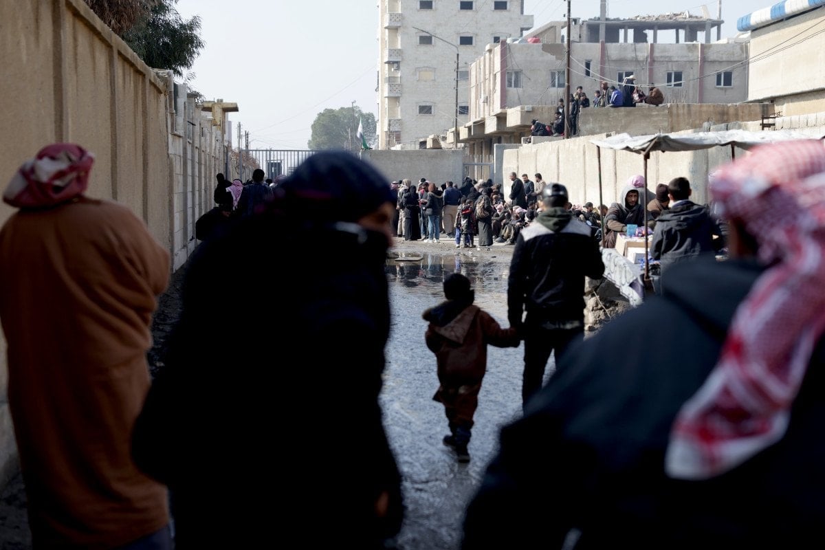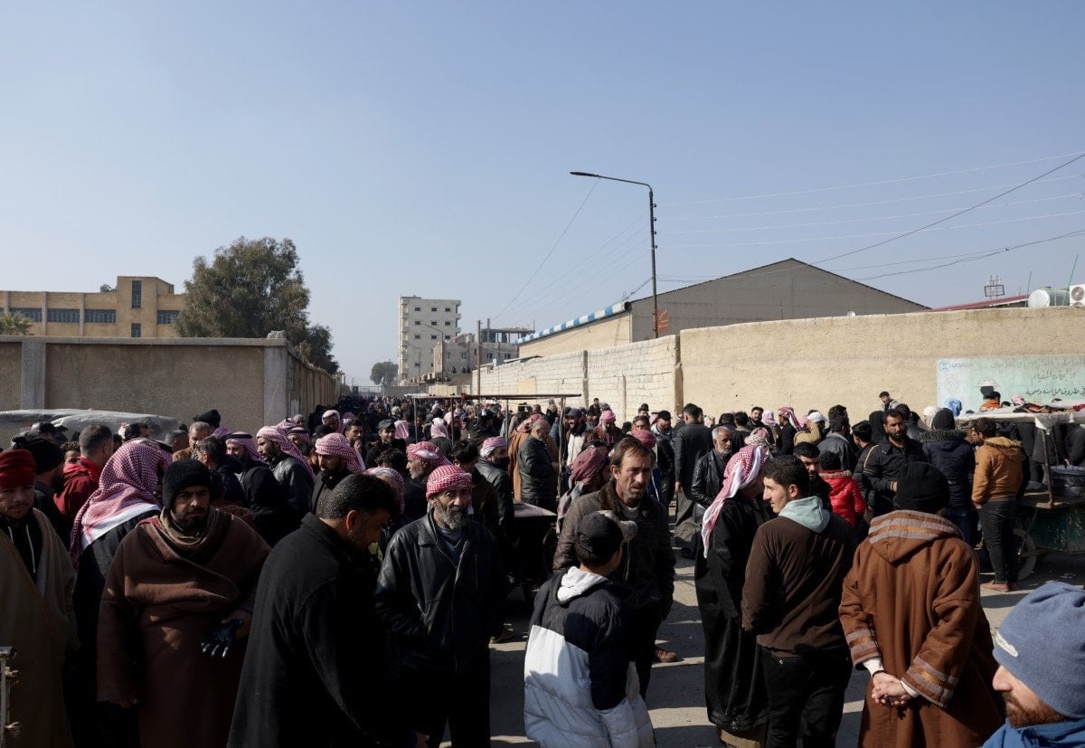 Rakka’nın kent merkezinde geleneksel kıyafetleri içinde kadın, yaşlı, çocuk yüzlerce kişi, YPG’nin alıkoyduğu yakınlarını endişeyle bekliyor.