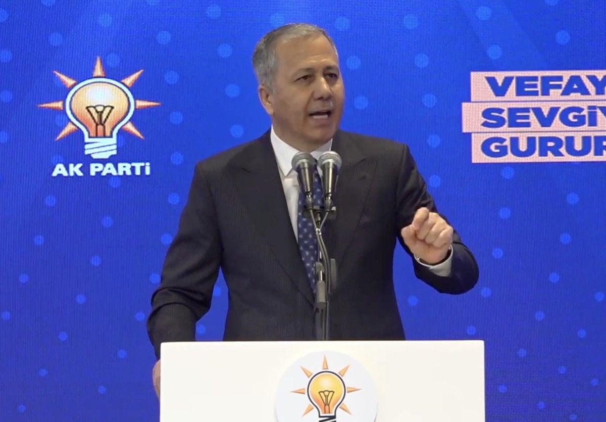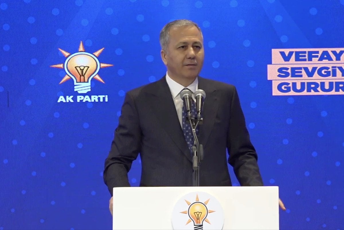 Bakan Yerlikaya burada partililere hitap etti.