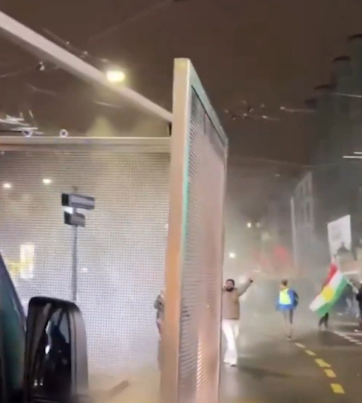 Taşkınlık çıkaran göstericiler polise havai fişek ve demir çubuklarla saldırırken, çıkan arbedede birkaç polis memuru yaralandı.