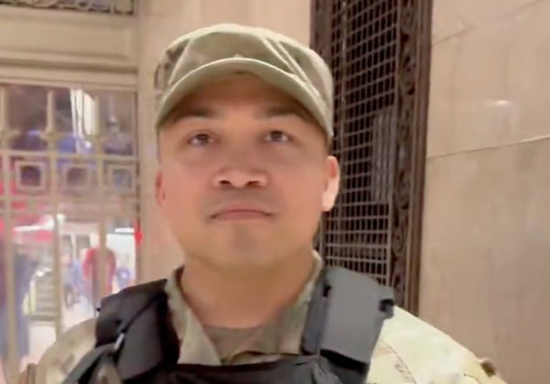 Ancak asker, soruların hiçbirine net bir yanıt vermezken, o anları kayda alan şahıs, “Bu soruya cevap veremez misiniz, Amerika önce geliyor diyemiyor musunuz?” sözleriyle askerin üzerine gitti.
