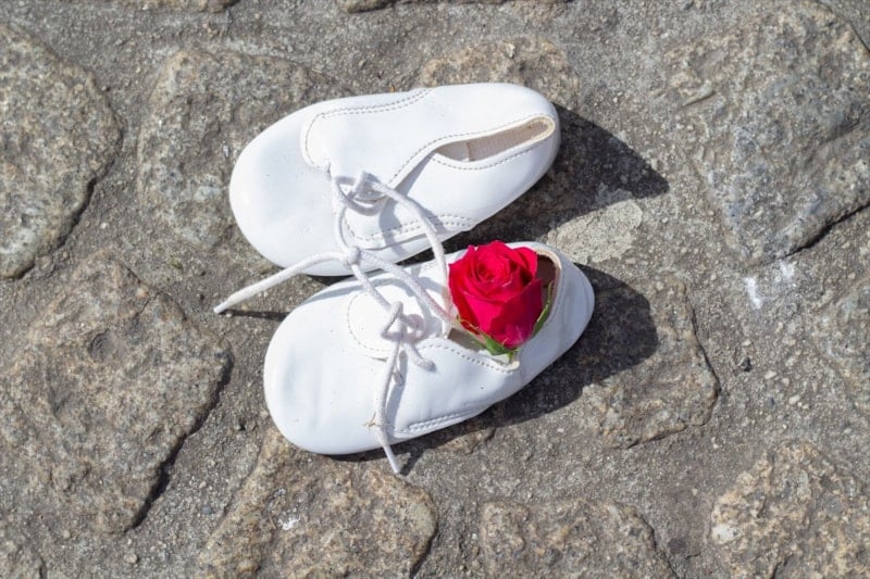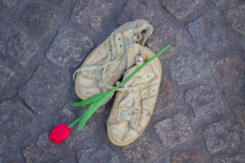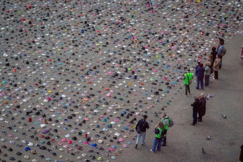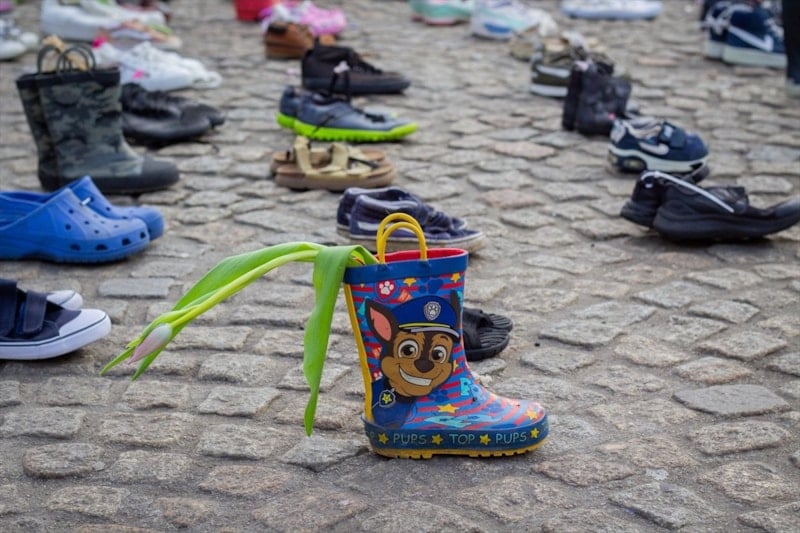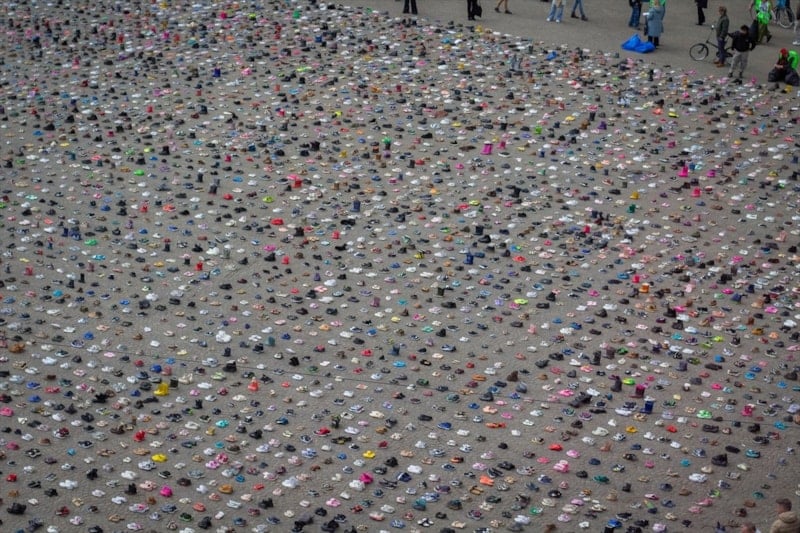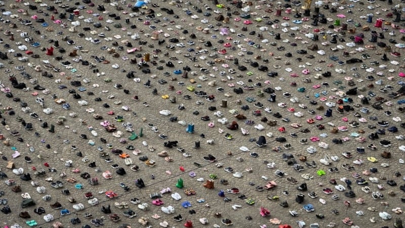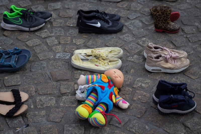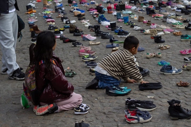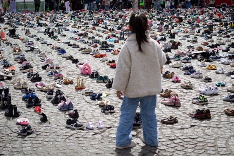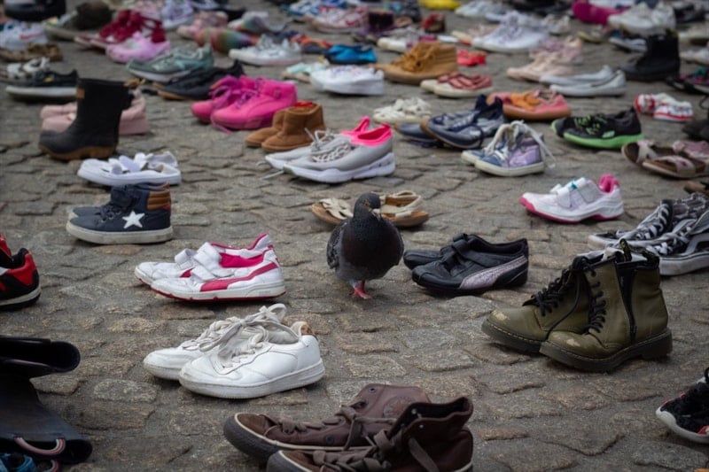 Binlerce çocuk ayakkabısı da meydana bırakıldı.