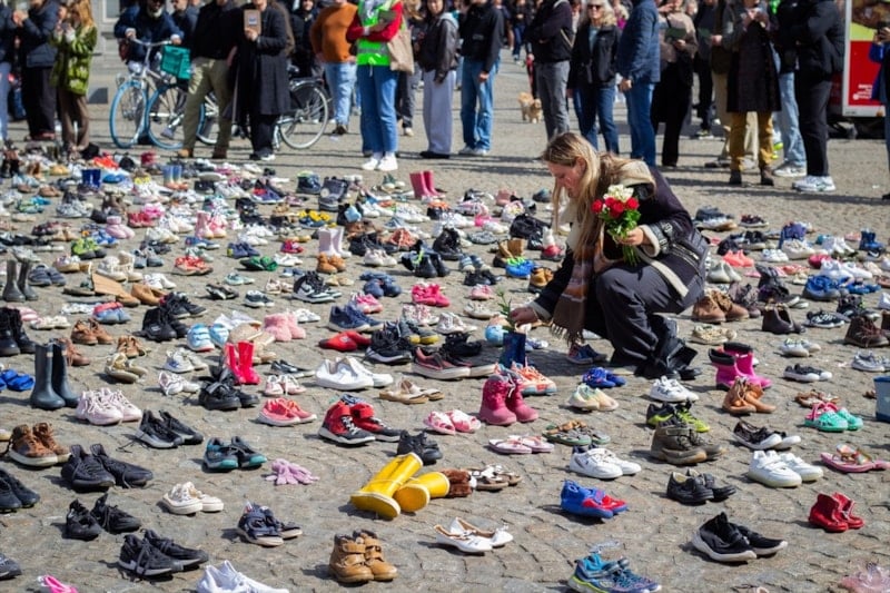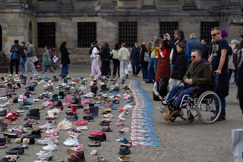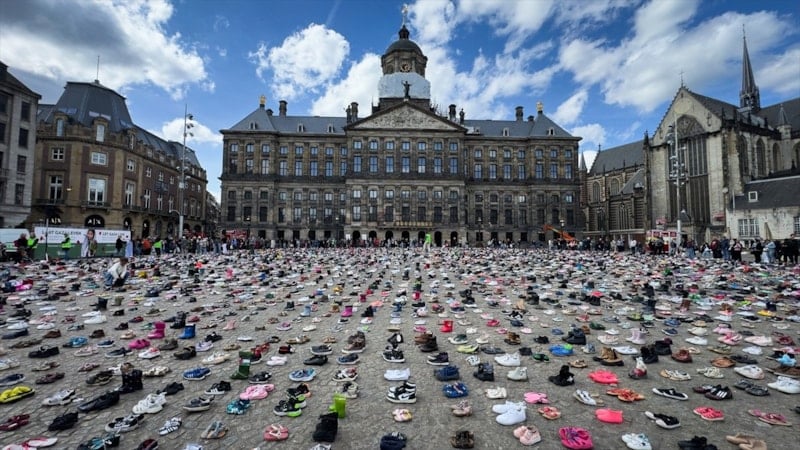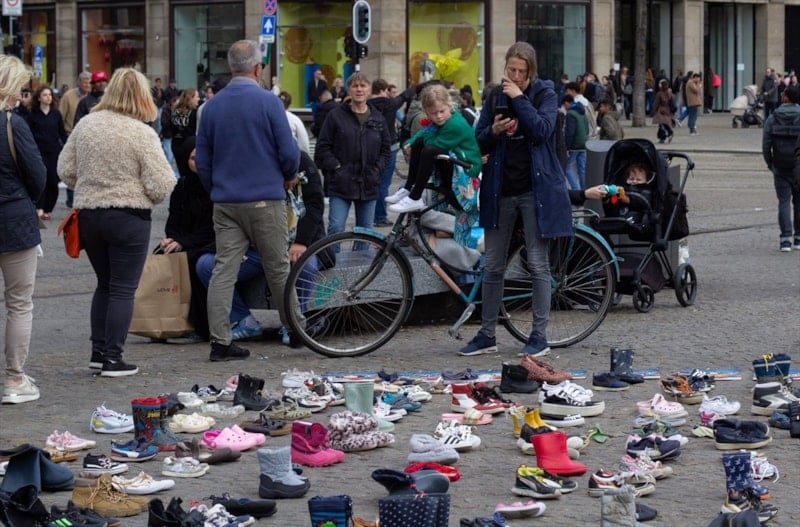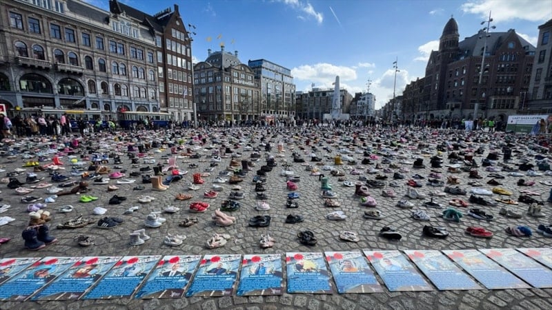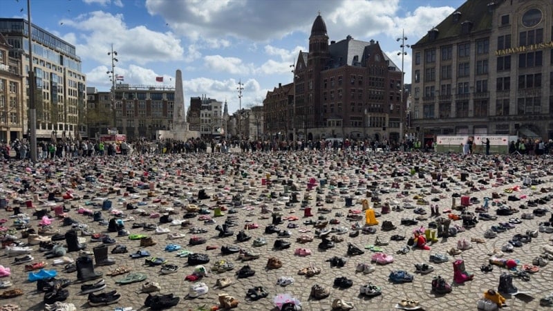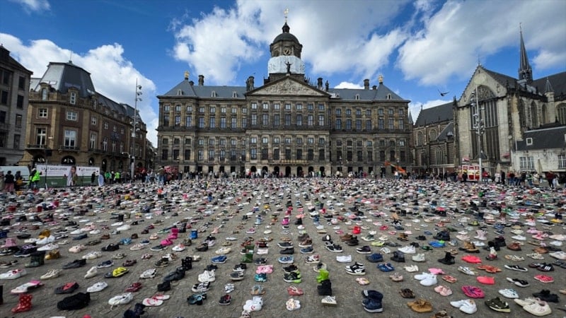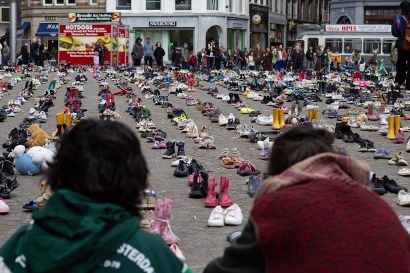 Van der Most, Amsterdam’da düzenlenen Ocak 2024’teki anma etkinliğinde 10 bin ayakkabı sergilendiğini, bugün ise öldürülen çocuk sayısının 20 bine ulaştığını belirtti.