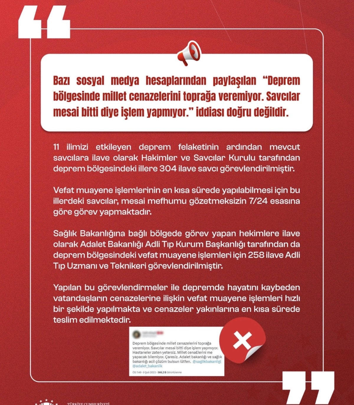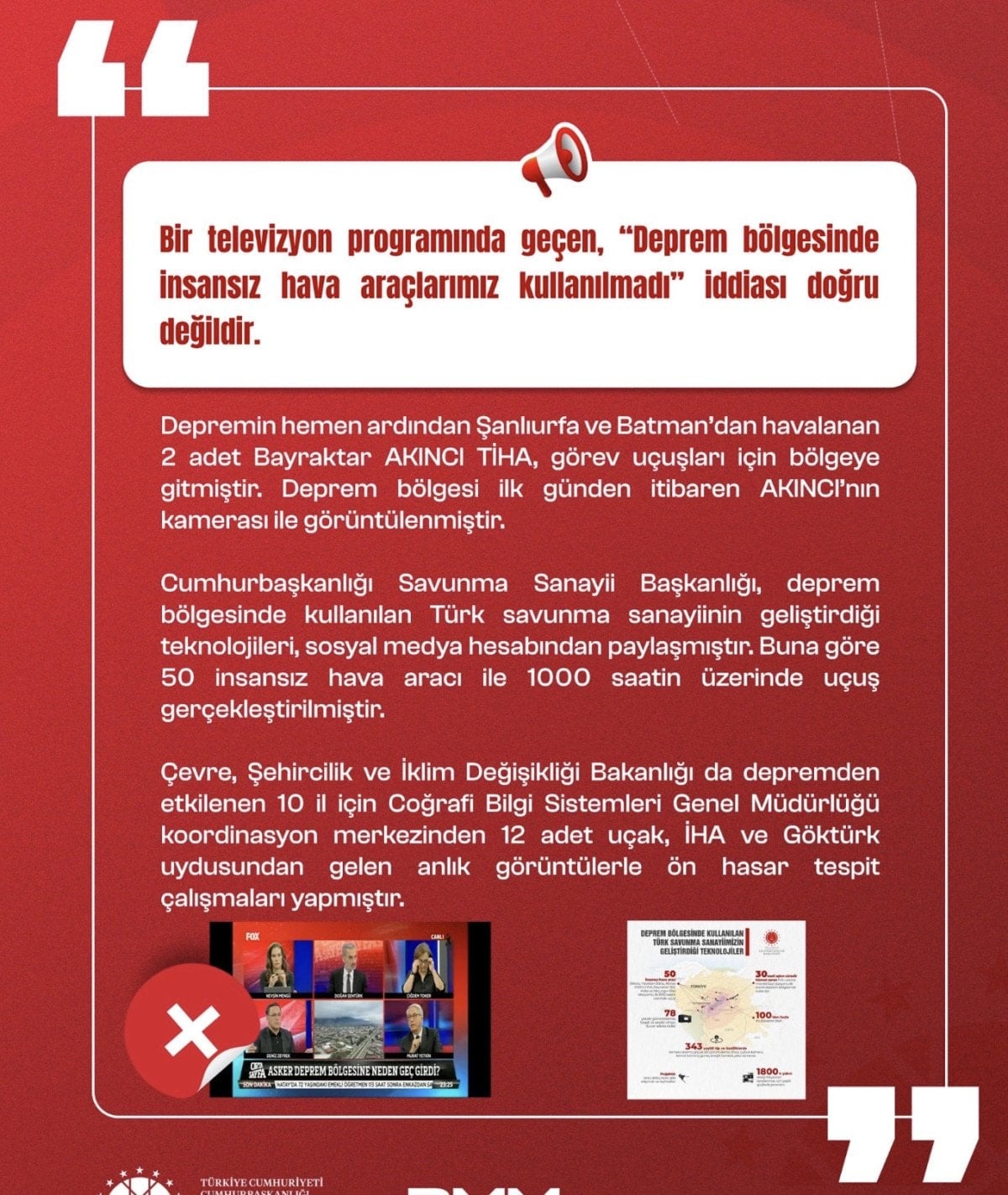 Bu yalanlarla başta T.C. İletişim Başkanlığı Dezenformasyonla Mücadele Merkezi olmak üzere ciddi bir mücadele yürütüldü.