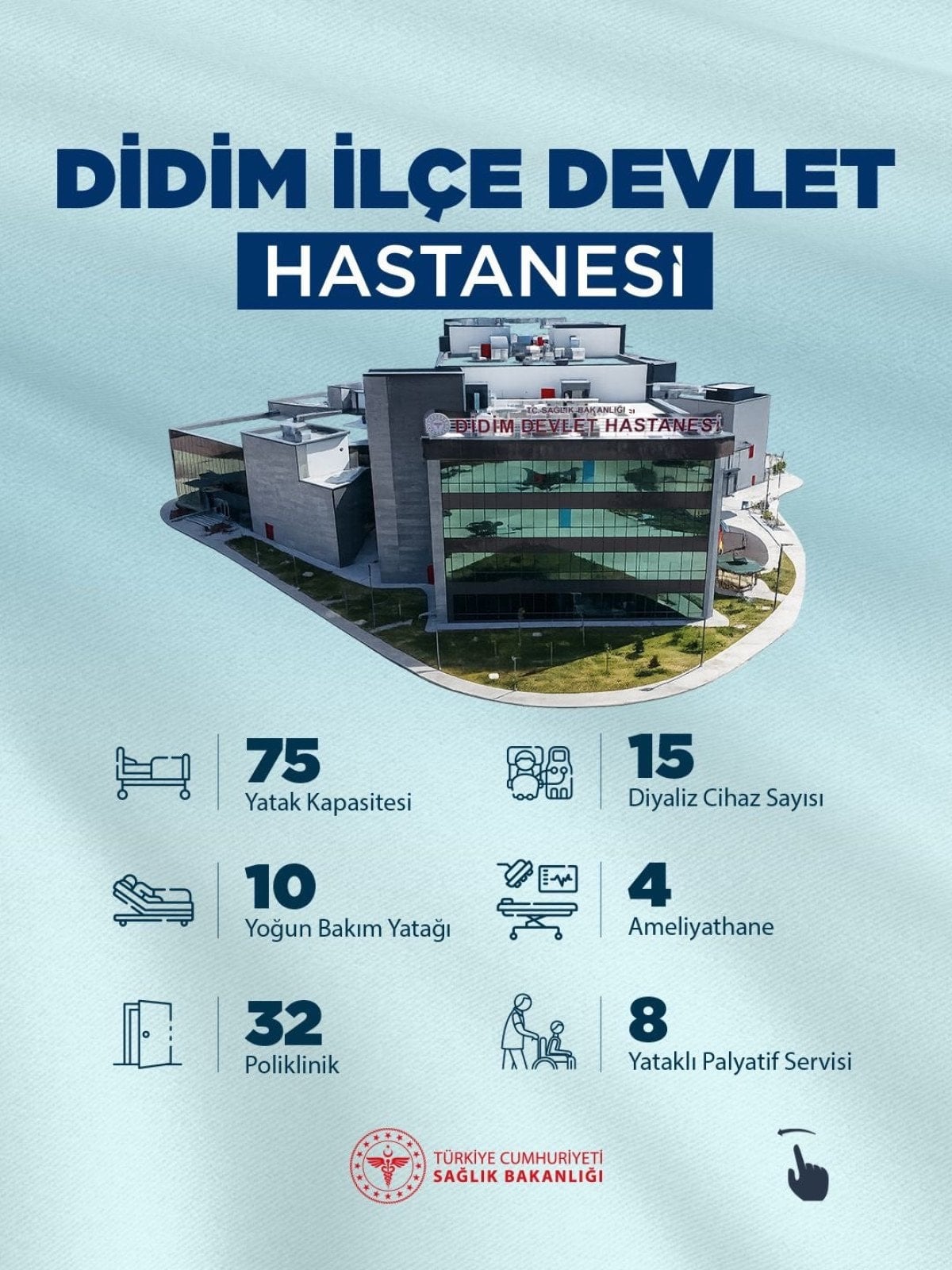 Sağlık Bakanlığı, sosyal medya üzerinden “Aydın’ımızın sağlık hizmeti kapasitesini önemli ölçüde artıracak 11 yeni sağlık tesisimiz, vatandaşlarımızın şifası için kapılarını açıyor.” notuyla yaptığı paylaşımda tesislerin kapasite ve cihaz sayısı gibi detaylarını aktardı: