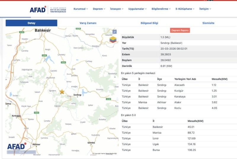 Bu kapsamda, Balıkesir’in Sındırgı ilçesinde bir deprem meydana geldi.