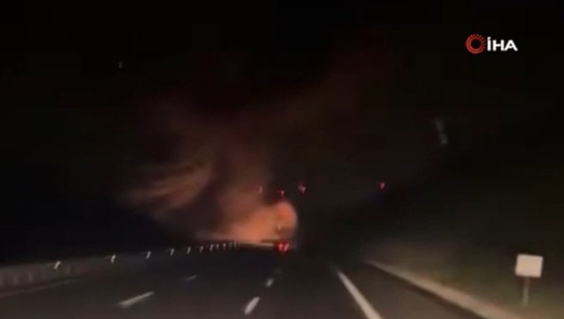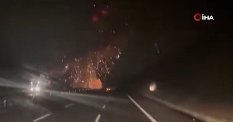 Görüntülerde, otoyolda ilerleyen araçtaki vatandaşların gökyüzündeki patlamayı fark ederek büyük şaşkınlık yaşadığı görülüyor.