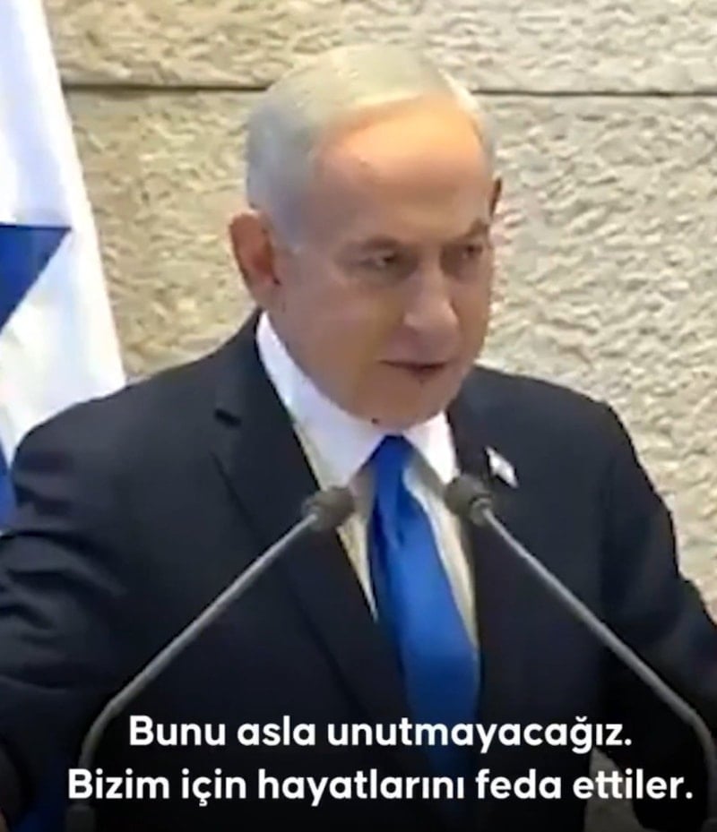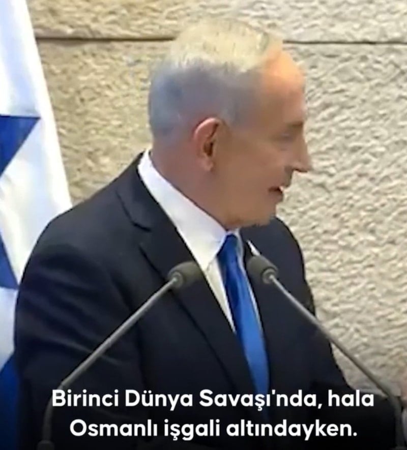 Birinci Dünya Savaşı sırasında İsrail diye bir devlet bulunmamasına ve Filistin’deki Yahudi nüfusunun çok sınırlı olmasına rağmen, o dönemde İngiliz ordusu saflarında Osmanlı’ya karşı Filistin’de savaşan Hindistanlı askerlerin “kendilerinin (İsrail’in) özgürlüğüne yardım ettiğini” savunan Netanyahu, Osmanlı Devleti’ni “işgalci” olmakla suçladı.
