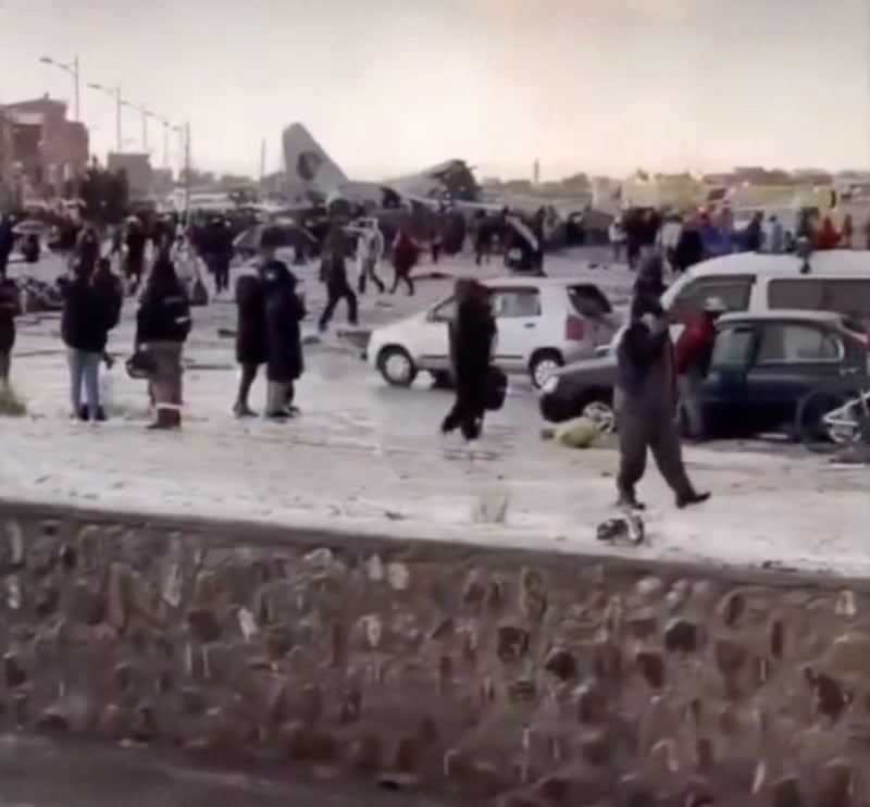 Sosyal medyada dolaşıma giren görüntülerde, uçak enkazının bulunduğu noktaya vatandaşların akın ettiği görüldü.