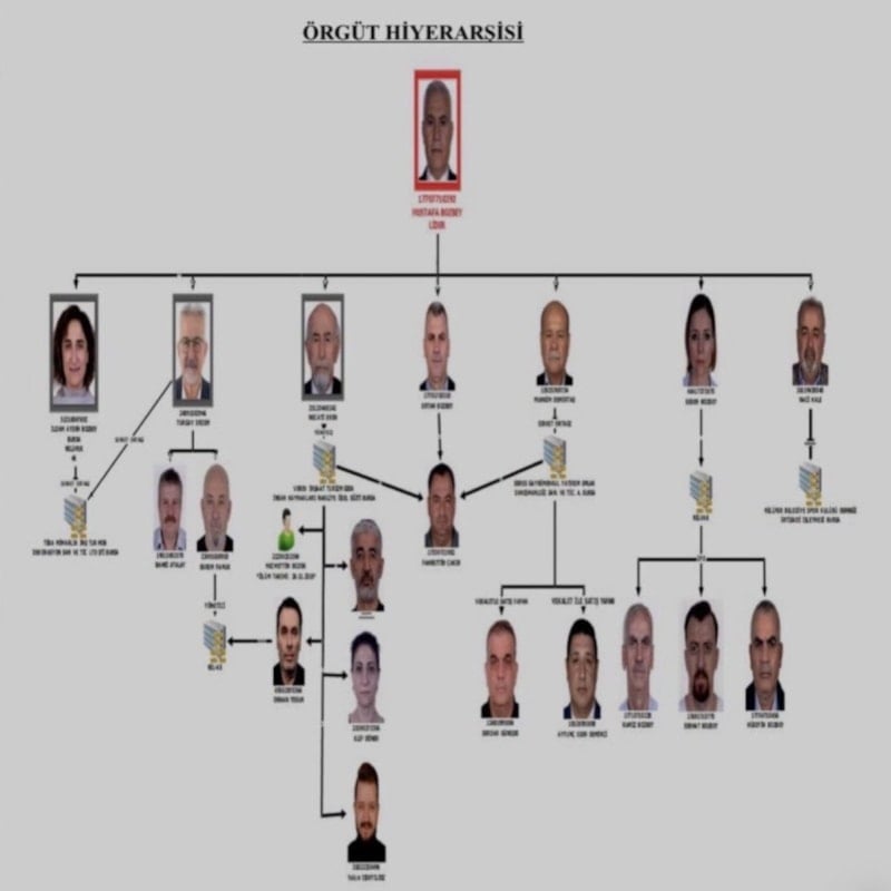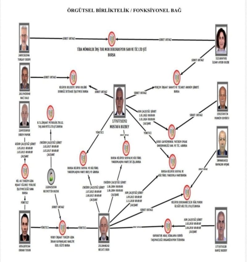Şüphelilerin emniyet birimlerinde işlemleri devam ederken Bursa Cumhuriyet Başsavcılığınca, Mustafa Bozbey Suç Örgütü’ne karşı yürütülen soruşturmanın örgüt şeması ortaya çıktı.