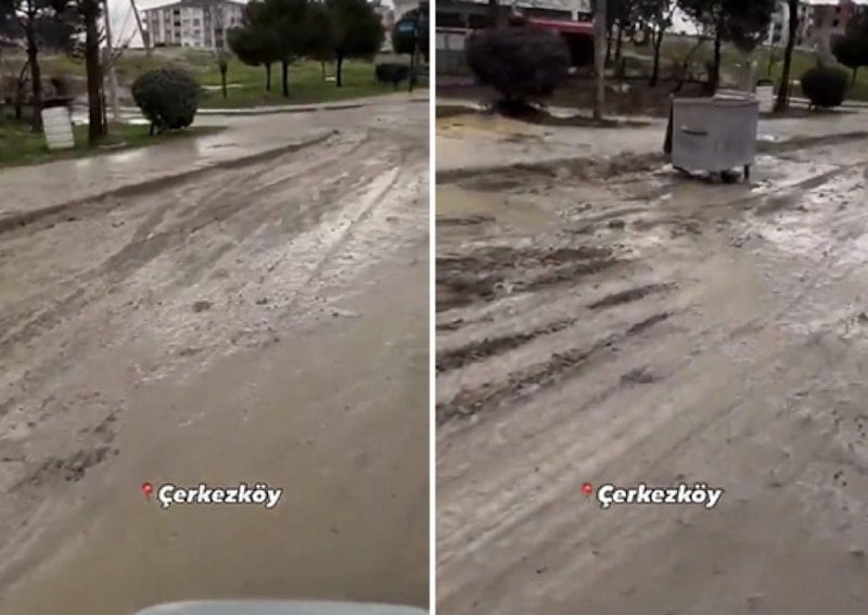 Tekirdağ’ın Çerkezköy ilçesinde günlerdir süren altyapı sorunları ve aşırı yağışlar, yolları geçilmez birer çamur deresine dönüştürdü.