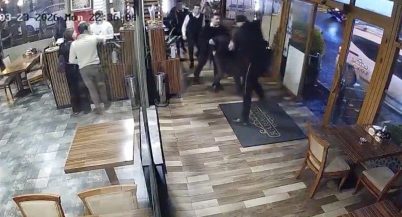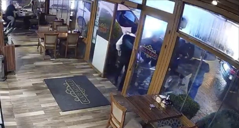 O anlar kameralara anbean yansırken, Ataman restoranda bulunanlar tarafından uzun süre darba maruz kaldı.
