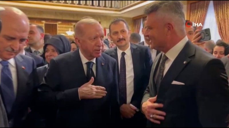 Resepsiyona Cumhurbaşkanı Erdoğan’ın yanı sıra MHP Lideri Devlet Bahçeli, CHP Genel Başkanı Özgür Özel, DEM Parti eş Genel Başkanı Tuncer Bakırhan gibi siyasi isimlerin yanı sıra spor ve sanat camiasından da isimler katıldı.