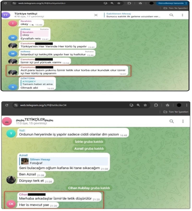 İletişim platformlarında oluşturulan gruplar vasıtasıyla ‘tetikçi’ temin etme ya da ‘tetikçilik’