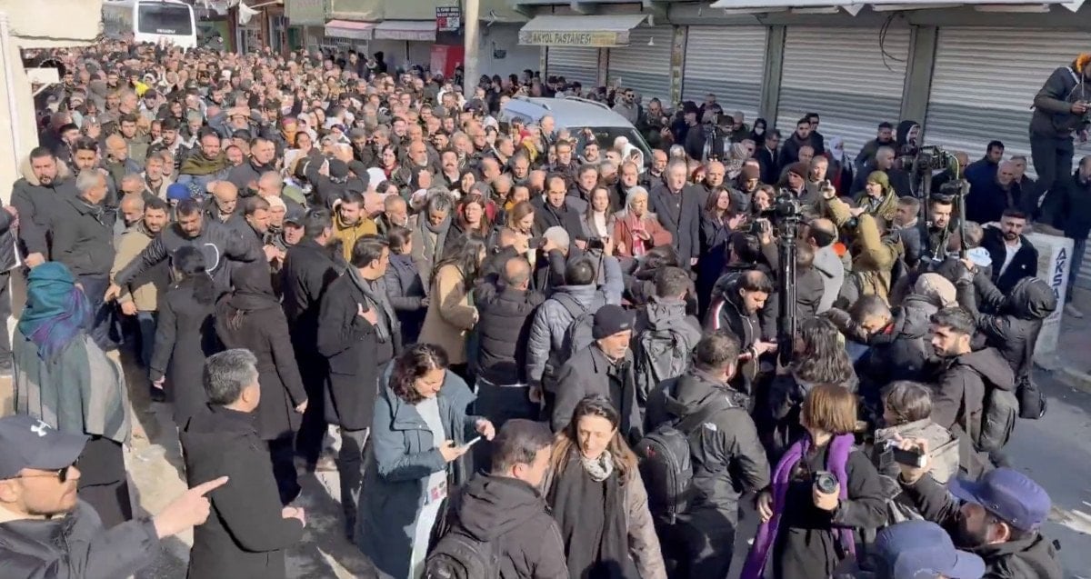 Toplantı öncesi DEM Partili vekiller ve beraberindeki kalabalık, Demiryolu Kavşağı’nda toplandı.