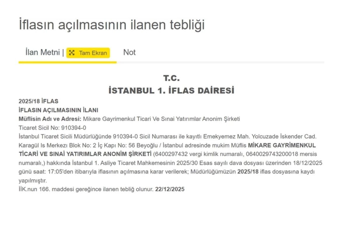 Tayfun Demirören hakkındaki iflas kararını İstanbul 1’inci Asliye Ticaret Mahkemesi verdi. Mahkeme kararınının ardından iflas tasfiye işlemleri İstanbul 3’üncü İflas Müdürlüğü tarafından başlatıldı.