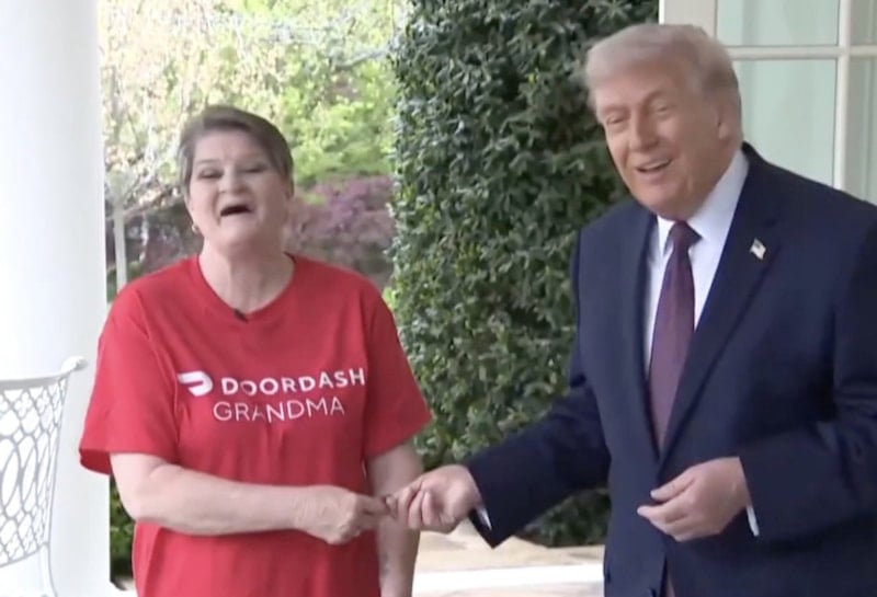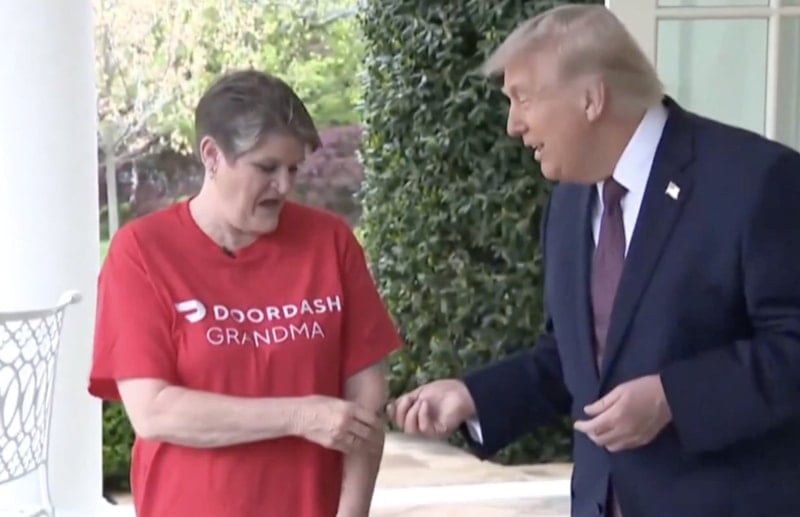 Trump, kuryeyi karşılayarak cebinden 100 dolar nakit bahşiş çıkardı ve kadına verdi.