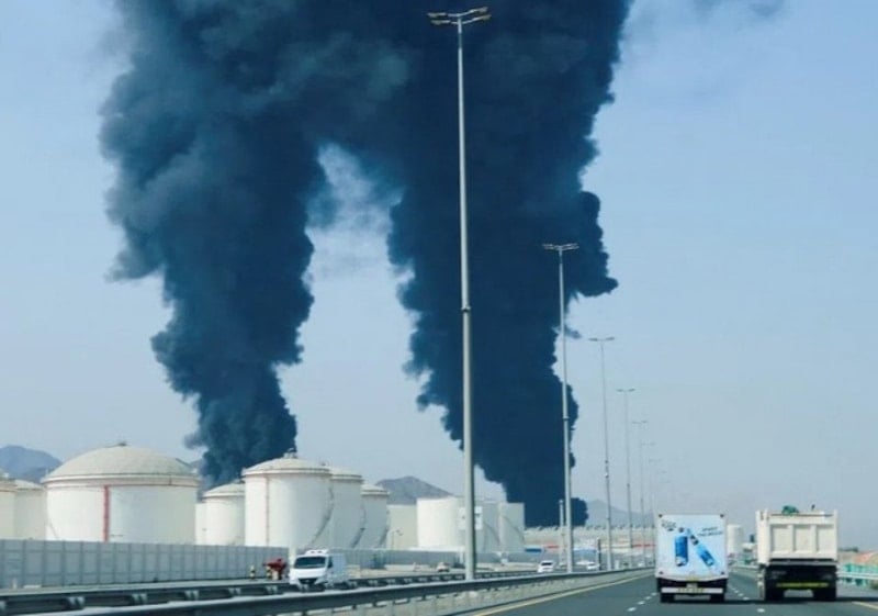 Dubai Hükümeti Medya Ofisi tarafından yapılan açıklamaya göre, havalimanı yakınındaki bir yakıt tankına isabet eden İHA, bölgede yangına yol açtı.