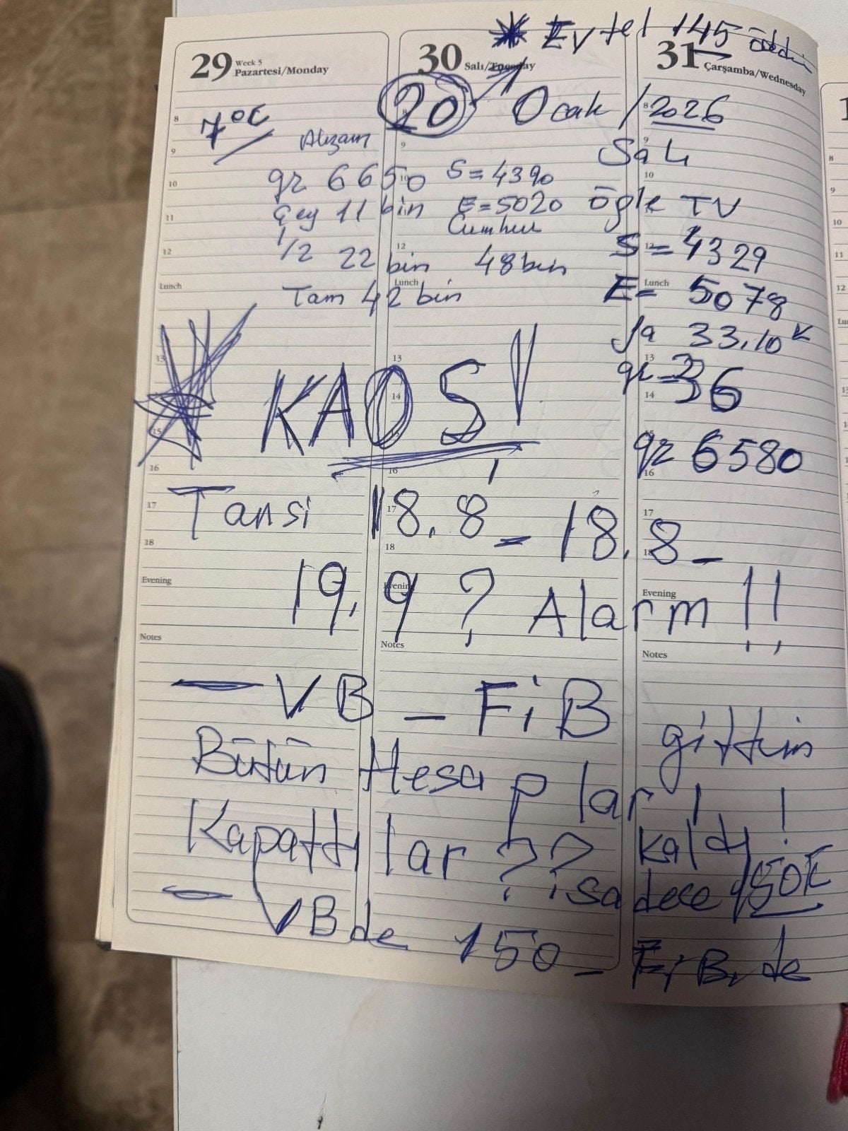 Sürekli aramalardan bunalan C.A.’nın günlüğüne, ‘Bugün çok zor geçti’, ‘Hayatımın en kötü yılbaşısı’, ‘Vekalet ver emri geldi’, ‘Dayan, dayan’ gibi notlar yazdığı belirlendi.