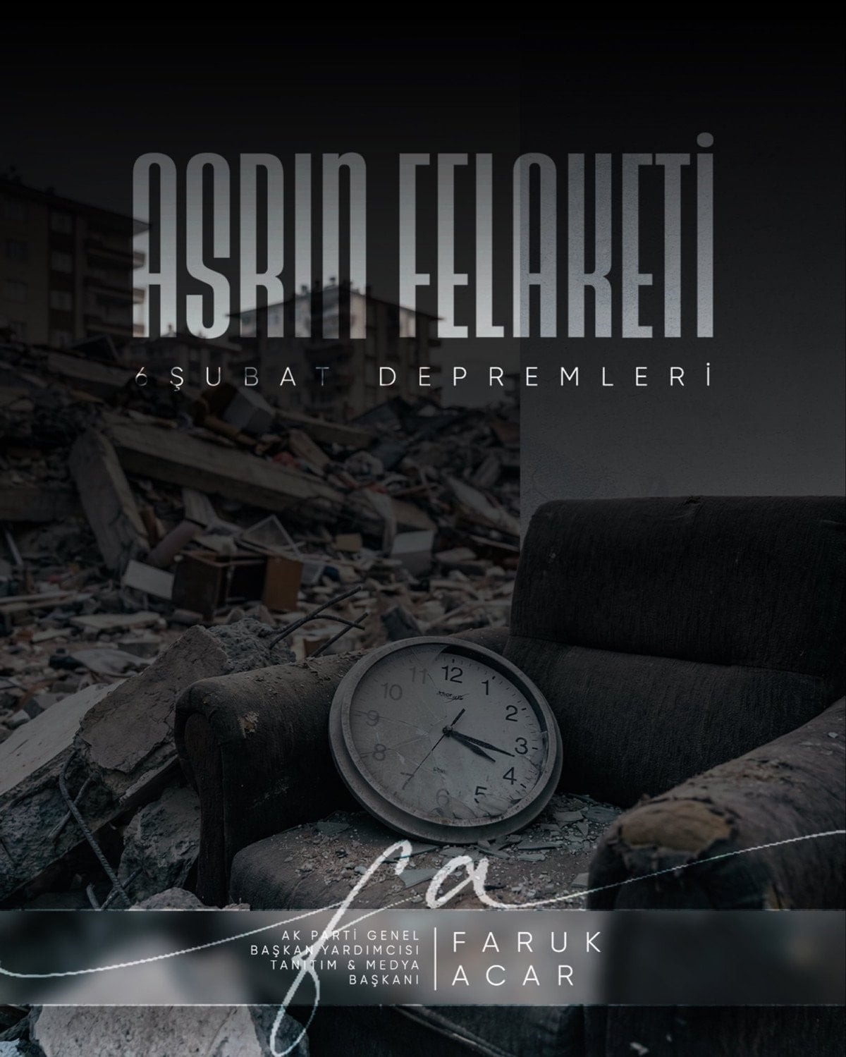 AK Parti Genel Başkan Yardımcısı ve Tanıtım ile Medya Başkanı Faruk Acar, Kahramanmaraş merkezli 6 Şubat depremlerinin üçüncü yıl dönümünde yayımladığı mesajda, hayatını kaybeden vatandaşları rahmetle andı, devletin deprem bölgesindeki çalışmalarının kararlılıkla sürdüğünü vurguladı.
