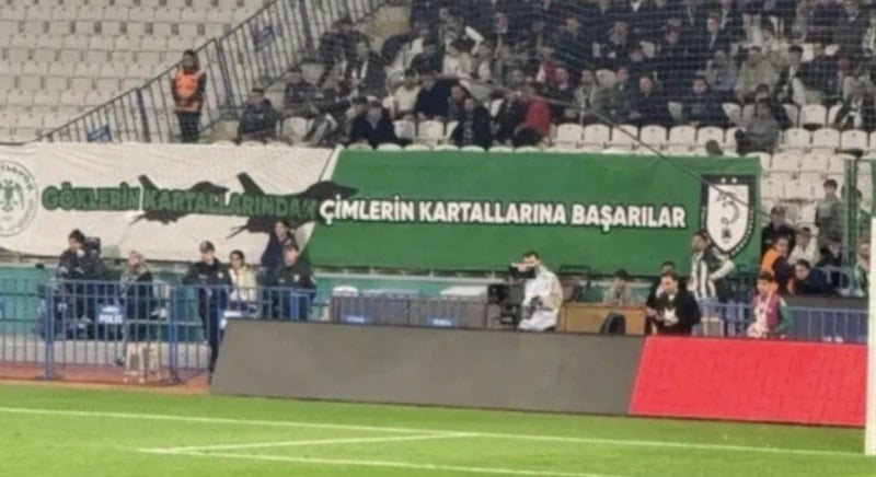 Karşılaşma sırasında taraftarların açtığı ve üzerinde jetlerin yer aldığı “Göklerin Kartallarından Çimlerin Kartallarına Başarılar” yazılı pankart dikkat çekti.