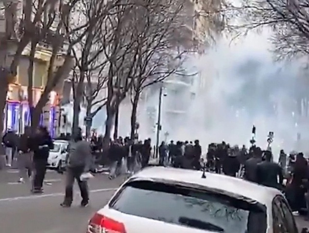 Fransa’nın başkenti Paris’te toplanan YPG/SDG yandaşları, güvenlik güçlerine havai fişeklerle saldırdı. Polis ekipleri, gruba biber gazı kullanarak müdahalede bulundu.