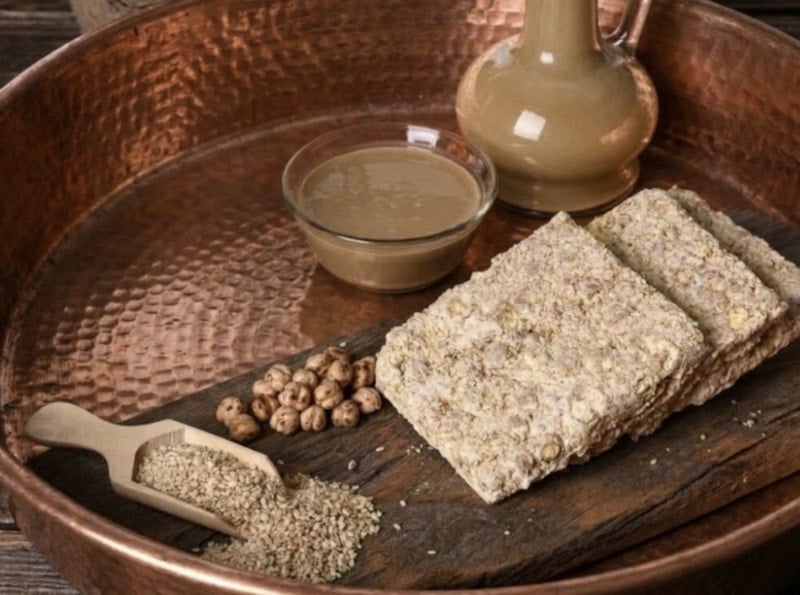 Gaziantep’te uzun yıllardır üretilen ve ustalık gerektiren üretim süreciyle kentin gastronomi mirasına değer katmayı sürdüren ürün; susam, leblebi, beyaz şeker, su, çöven ekstraktı ve asitlik düzenleyici limon tuzu kullanılarak hazırlanıyor.