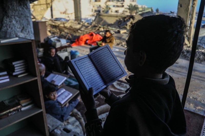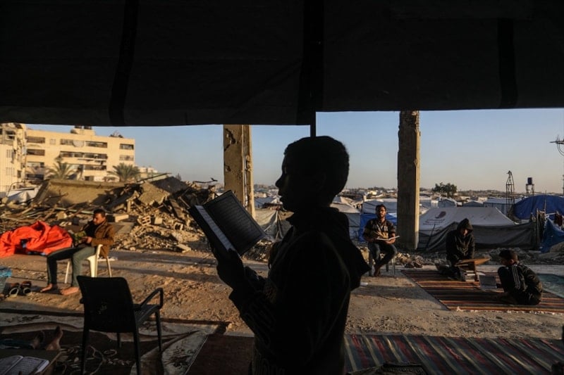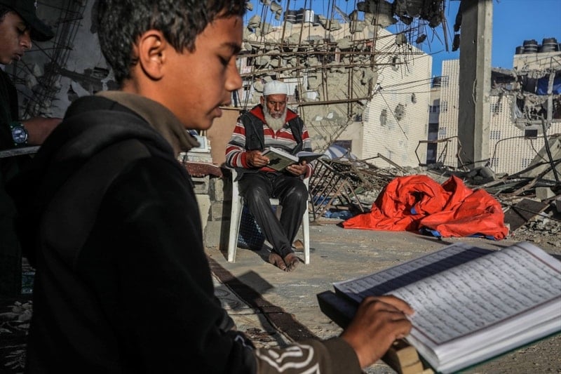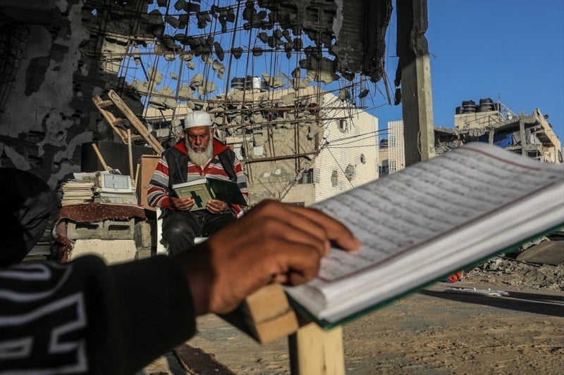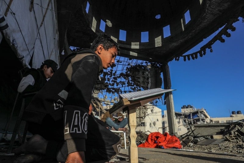 Han Yunus’ta yıkılmış camilerin enkazı arasında yükselen Kur’an tilavetleri, bir yandan yaşanan acılara tanıklık ederken diğer yandan halkın inanç ve eğitim faaliyetlerinden vazgeçmediğini gösteriyor.
