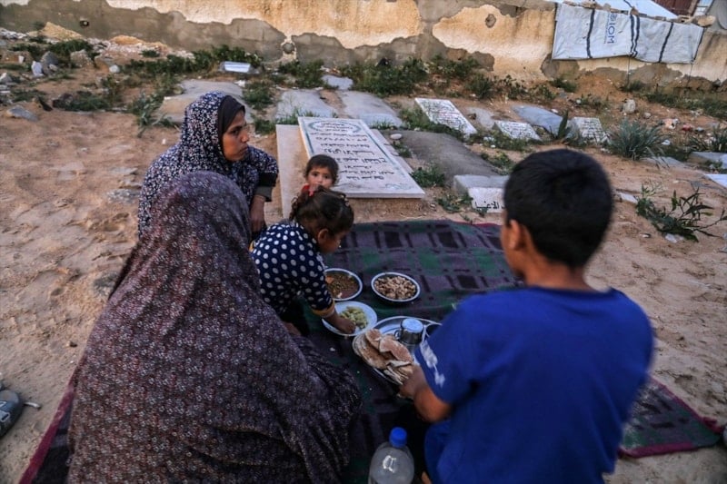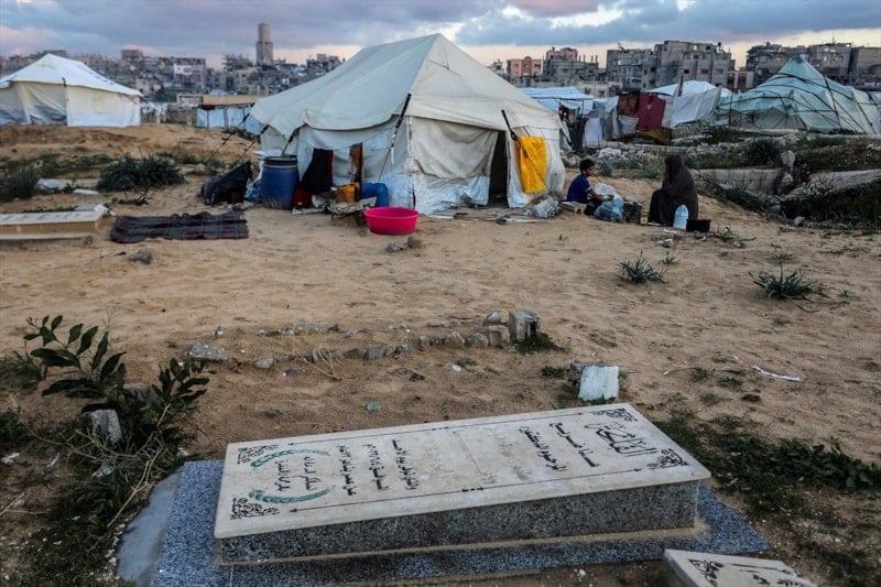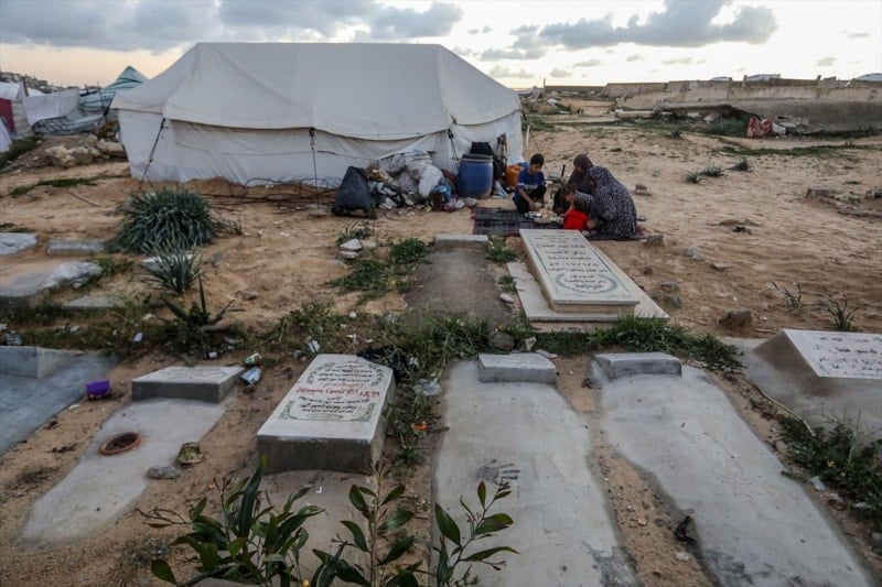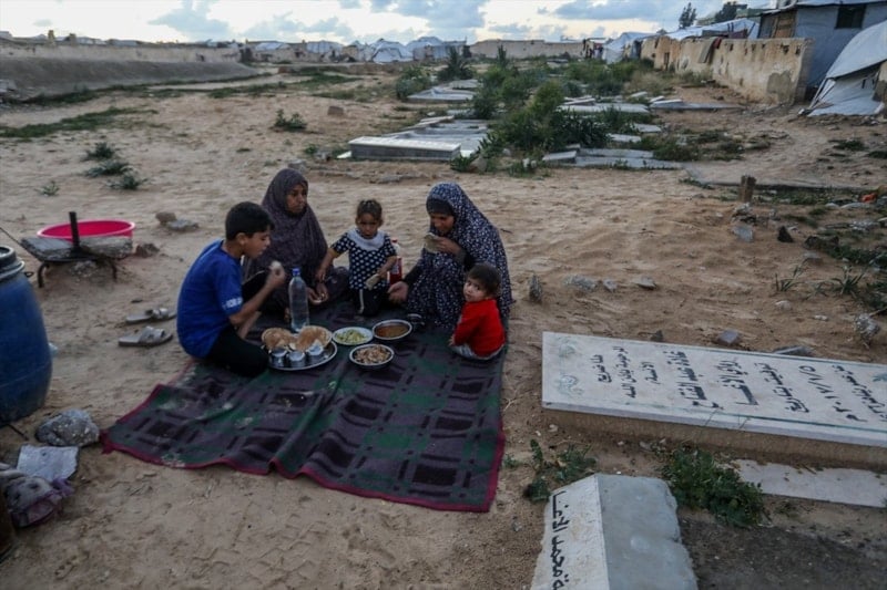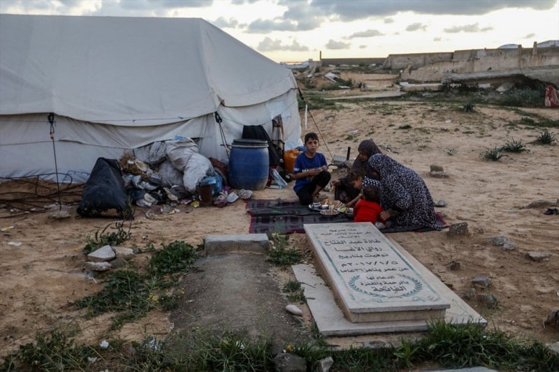 İsrail saldırıları sonrası Gazze’de evlerin yüzde 90’ı yıkılırken, 2 milyondan fazla Filistinli yerinden oldu. Yer bulamayan aileler, çadırlarını mezarlıklara kurarak iftar ve sahurlarını kabirlerin arasında yapıyor.