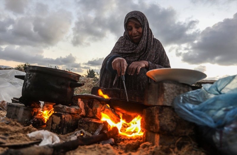 Bu tablo, bölgedeki insani kriz ve yerinden edilen Filistinlilerin ramazan ayındaki hayatta kalma mücadelesini gözler önüne seriyor.