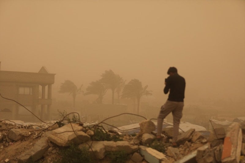Gazze’de kum fırtınası Filistinlilere zor anlar yaşattı