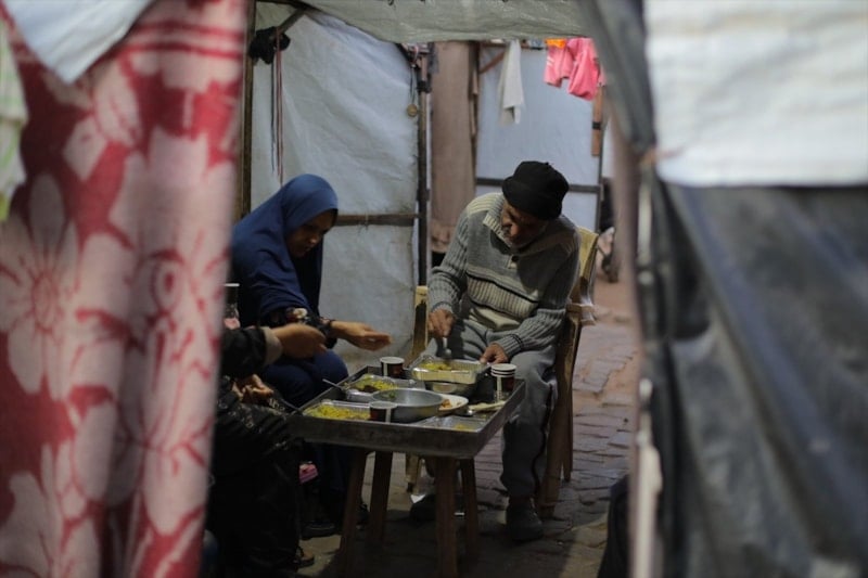 Ayrıca Filistinliler, bölgede bulunan binaların tamamının yıkılması nedeniyle iftarlarını çadırlarda yapıyor.