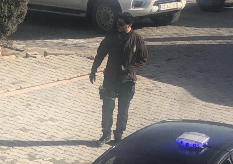 Fotoğrafta Mustafa Türkay Sonel’in kamuflaj kıyafeti giydiği ve üzerinde tabanca bulunduğu görülüyor.
