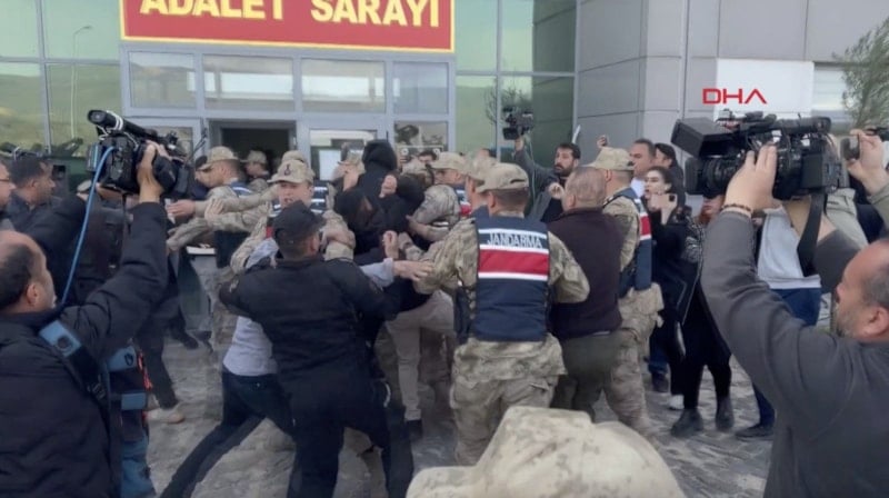 Adliyeye sevk sırasında Doku ailesi, şüphelilere tepki gösterdi ve kısa süreli arbede oluştu.