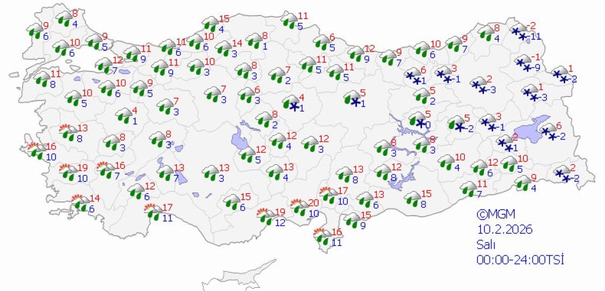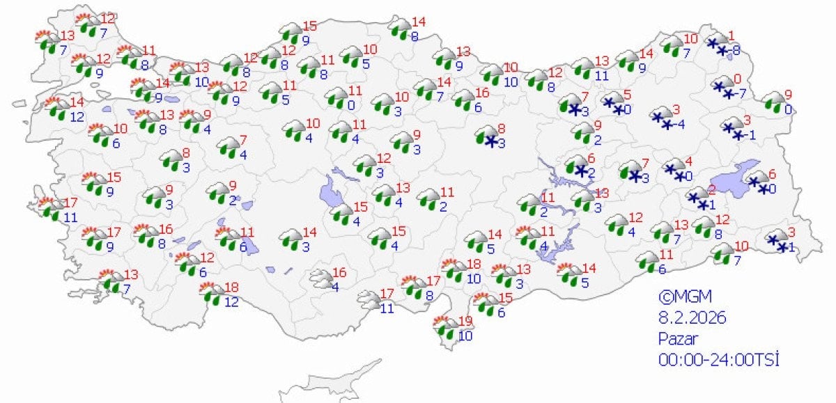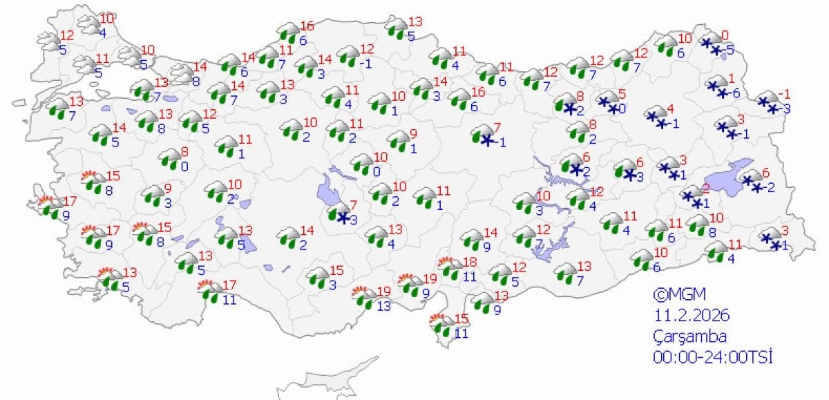 Hafta sonu Türkiye’nin batısı yağmurlu, doğusu kar yağışlı geçecek.