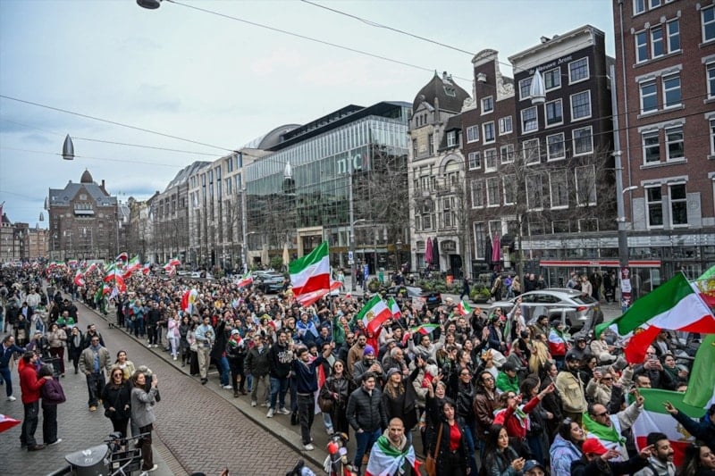 Hollanda’nın başkenti Amsterdam’daki Dam Meydanı’nda da Hamaney’in ölüm haberinin sevinci vardı.