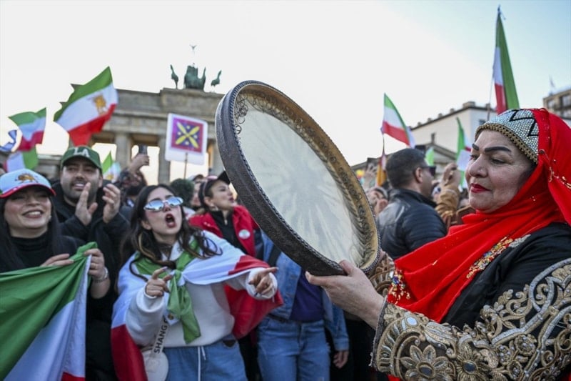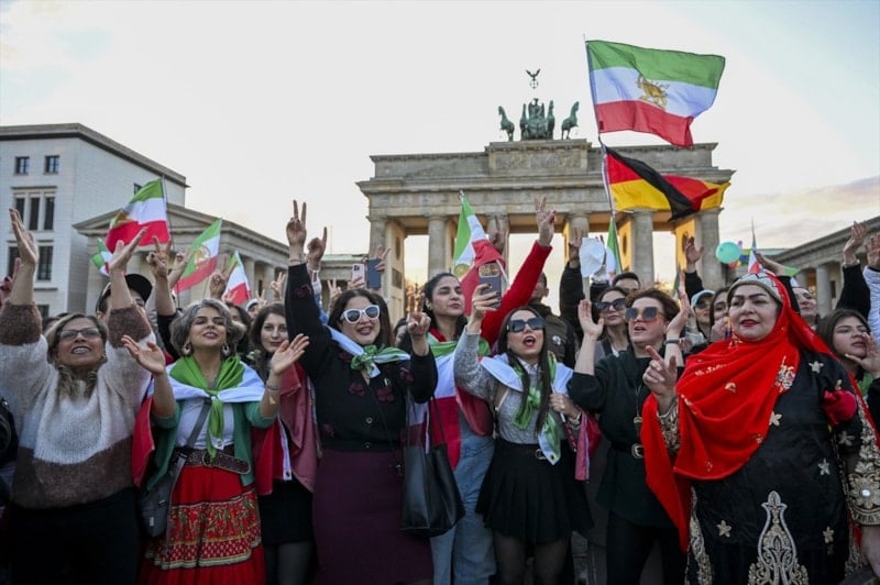 İranlı muhaliflerin gösteri adreslerinden biri Almanya’nın Berlin şehriydi. Göstericiler tarihi Brandenburg Kapısı’nda bir araya gelerek bayraklar sallayıp sloganlar attı.