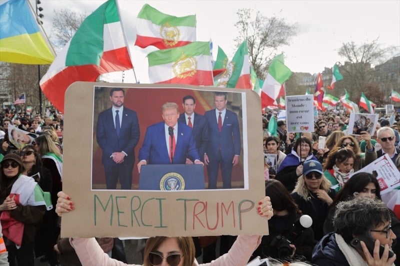 Ortak İsrail–ABD saldırısının ardından İran halkına destek vermek ve İran hükümetini protesto etmek amacıyla bir araya gelen binlerce kişi, Paris’te  Place de la Bastille’de bir araya geldi.