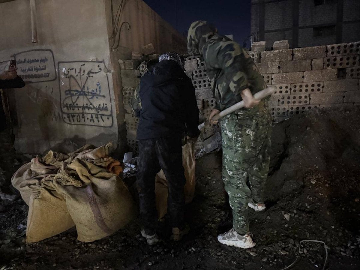 Sosyal medyaya yansıyan görüntülerde, teröristlerin hendek kazıp kum torbaları ile mevzi yaptığı görüldü.