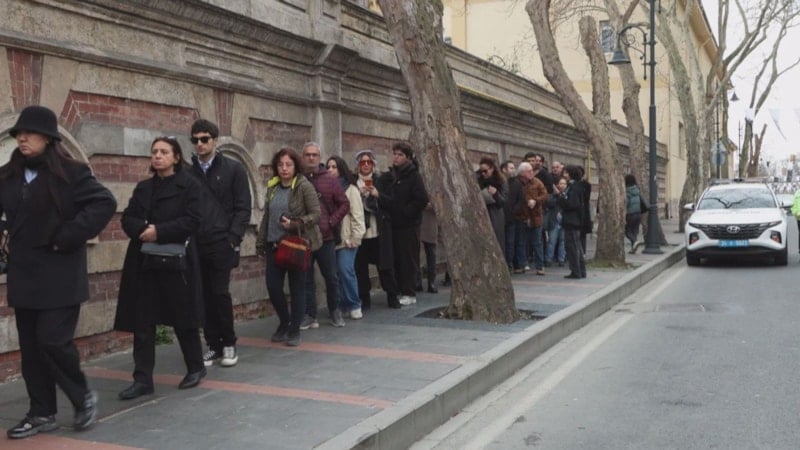 Tören alanına gelenlerin, uzun kuyruklar oluşturdukları görüldü.